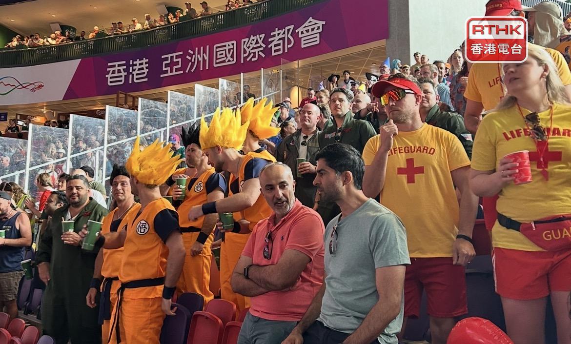 香港國際七人欖球賽第二日賽事,啟德體育園氣氛非常高漲,南看台座無虛席,入場人士悉心裝扮,以各式各樣造型參加這個一年一度大派對。