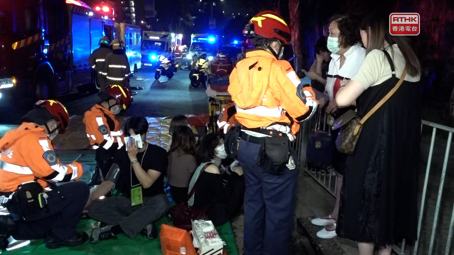 意外後多人在路邊等候救援,有人面部和腳部流血受傷,在現場接受救護員治理,有人需要由擔架送上救護車。