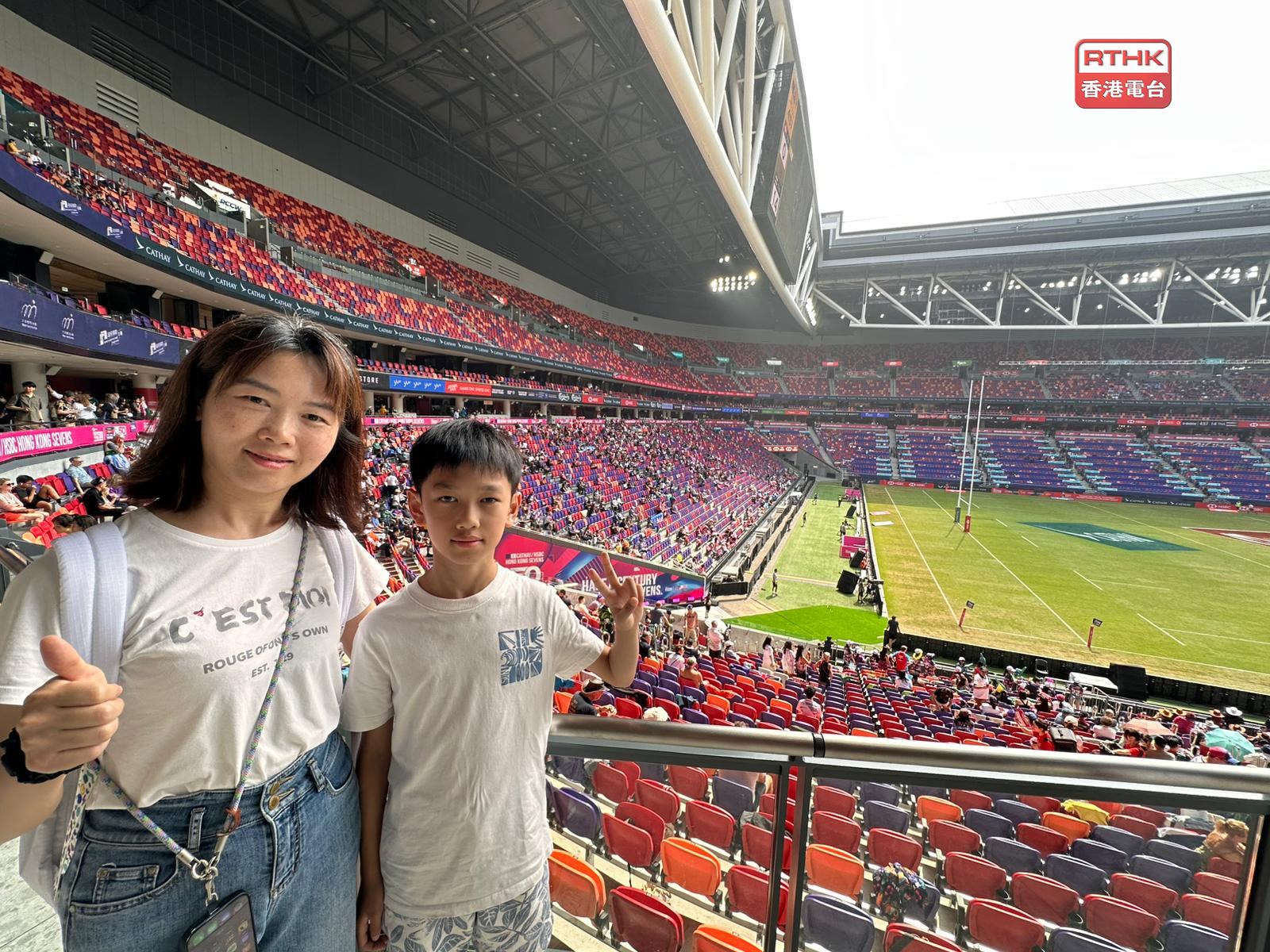 有市民說,陪同兒子連續第二日入場,觀看欖球比賽令人興奮,表演亦精彩,今次是第一次來到啟德主場館,場地很大、座位設計很好,即使坐在最高層都看得很清楚,打算之後再入場看足球比賽。