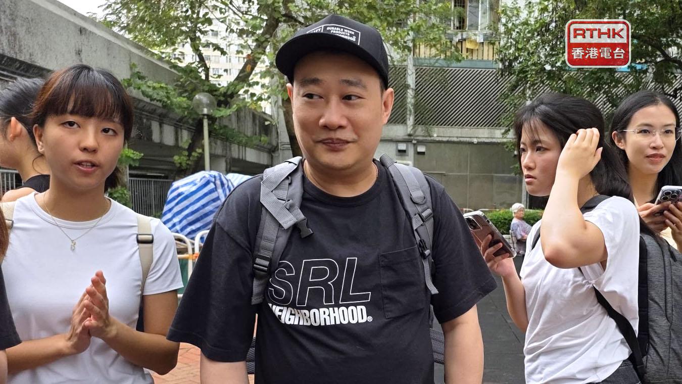 居民張先生早上帶同剛出院的嫲嫲一同到社區會堂,又說與嫲嫲同住宏新閣中層單位,但今日嫲嫲因身體無法應付,不會上樓,他會透過視像通話,將單位情況拍攝予嫲嫲觀看。