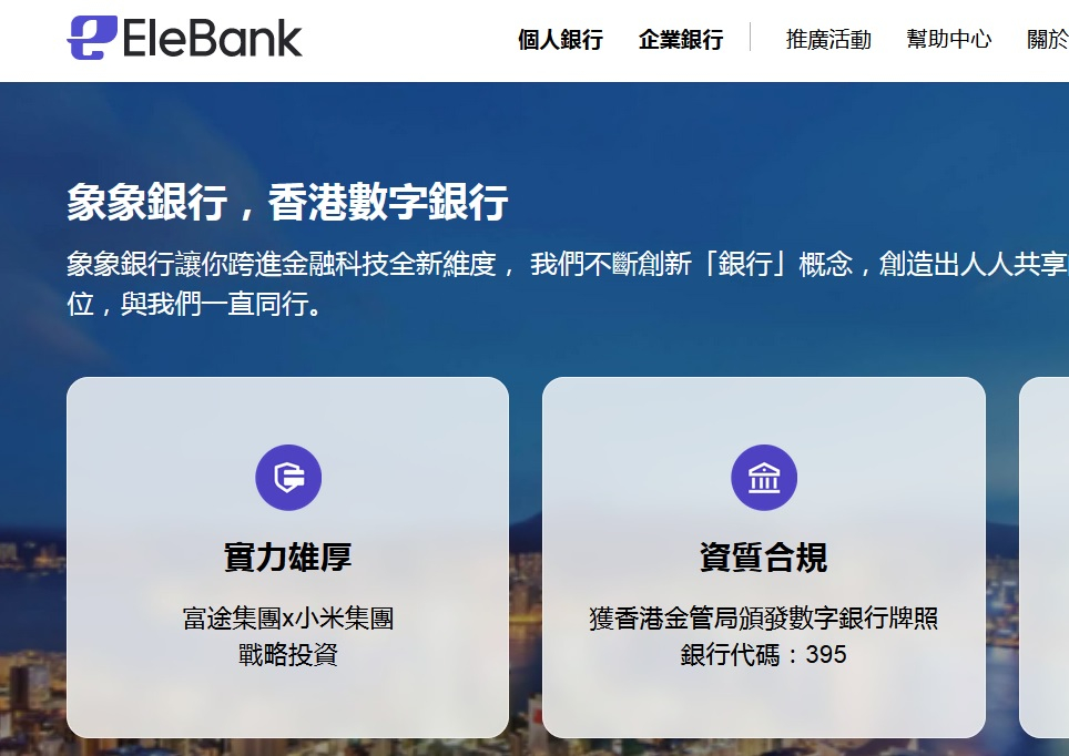 原名為天星銀行的象象銀行,是香港持牌數字銀行,戰略投資者包括富途及小米。