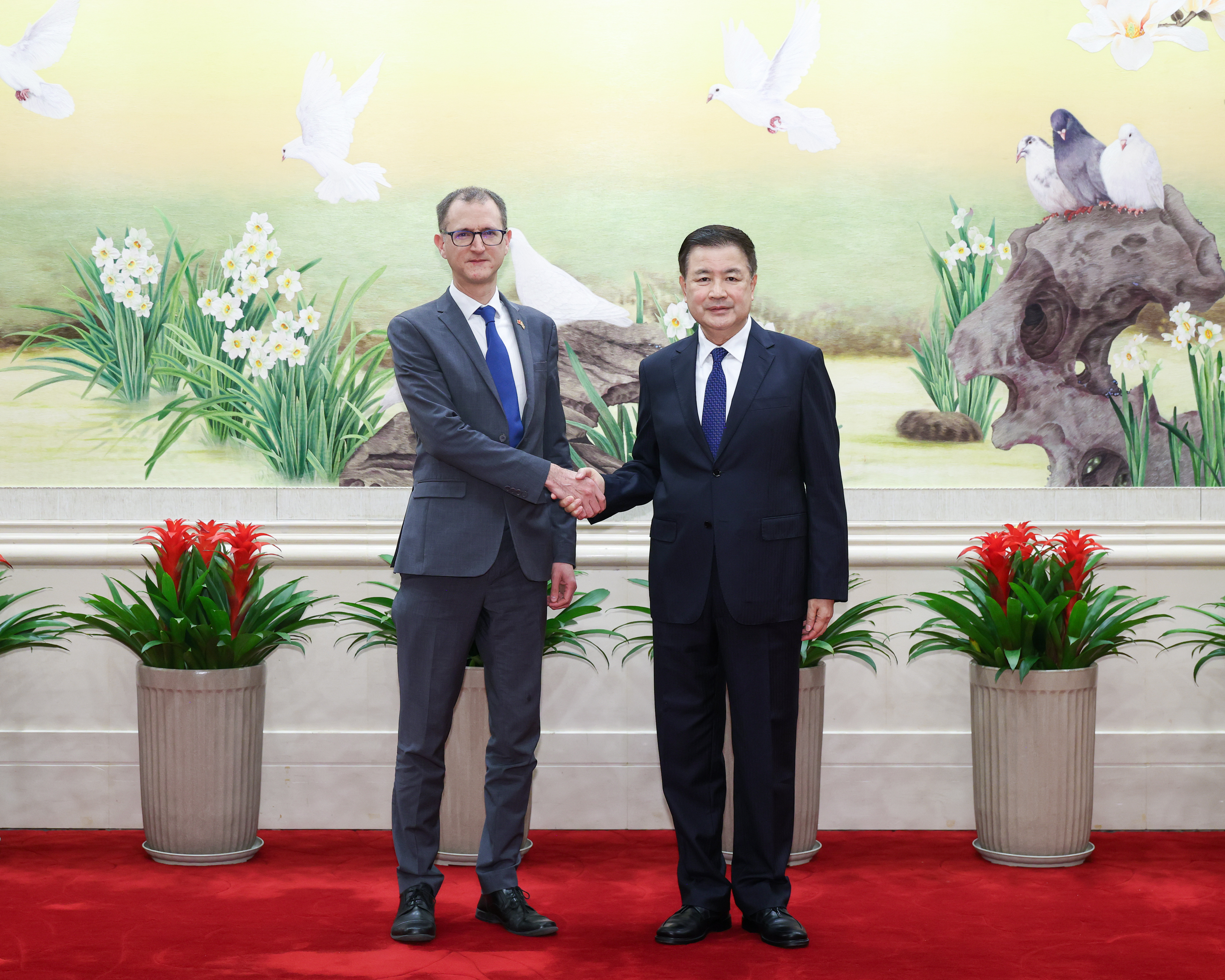 王小洪在北京與比格會面。(新華社)