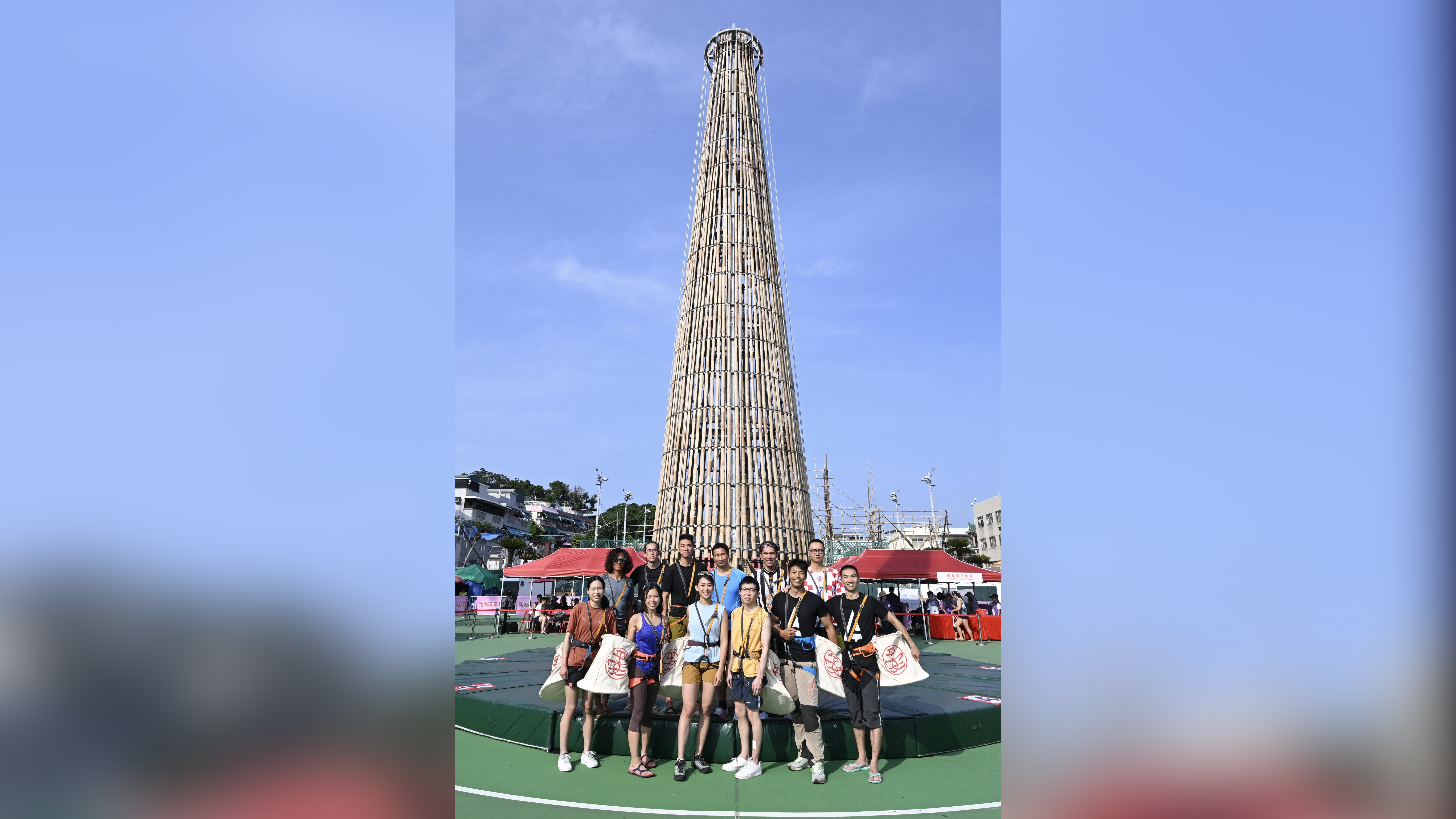 87名參賽者今日在長洲北帝廟遊樂場足球場參加選拔賽,爭取以最短時間攀登約14米高的包山架。男子組有9名健兒入圍決賽,女子組則有3人晉身決賽,包括去年「包山王」郭嘉明,以及去年的「包山后」龔子珊。