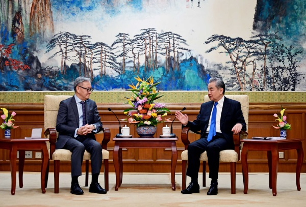 中共中央政治局委員、外交部長王毅在北京與老撾副總理兼外長通沙萬會面。