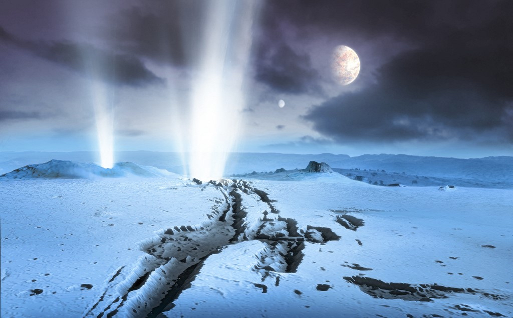When the spacecraft passed over the moon's south pole, it discovered jets of water bursting through cracks on the surface.