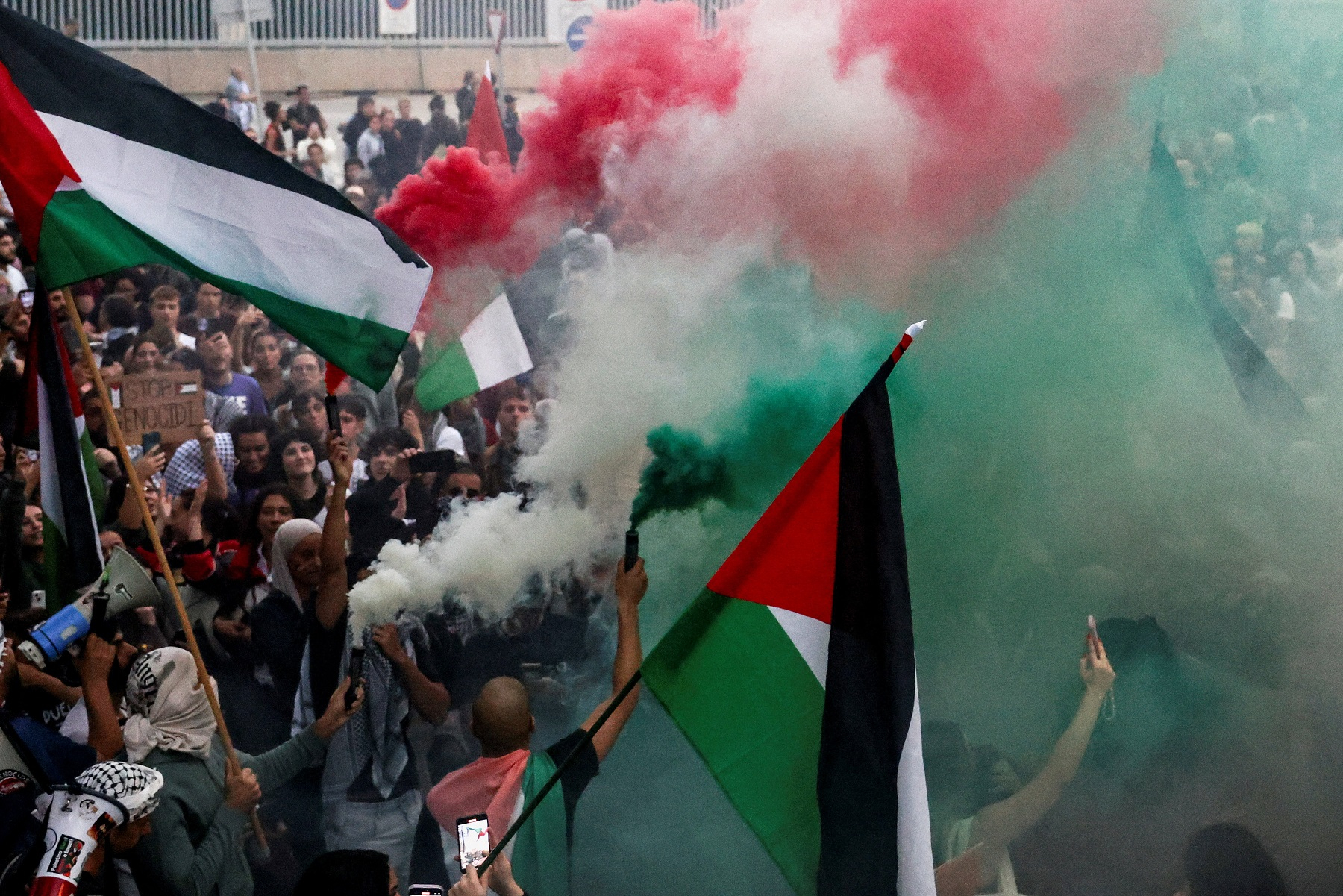 In Italy, where the country's main unions have called a general strike for Friday in solidarity with the flotilla, thousands took to the streets to urge Prime Minister Giorgia Meloni to defend the activists.
