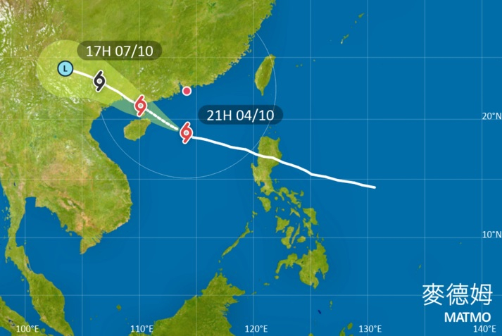 "In the past few hours, Matmo continued to move steadily towards the vicinity of Leizhou Peninsula and intensified. Local winds are strong over many places, with occasional gales offshore and on high ground," the observatory said in an update at 8.45pm.