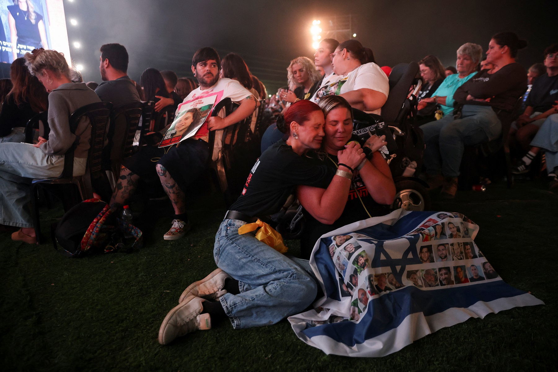 In Israel, relatives and friends of those killed at the Nova music festival lit candles and held a minute's silence at the site of the attack, where militants killed more than 370 people and seized dozens of hostages.