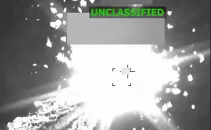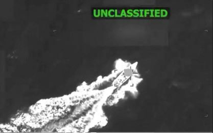 Like some previous videos released by the US government, a section of the boat is obfuscated for unspecified reasons.