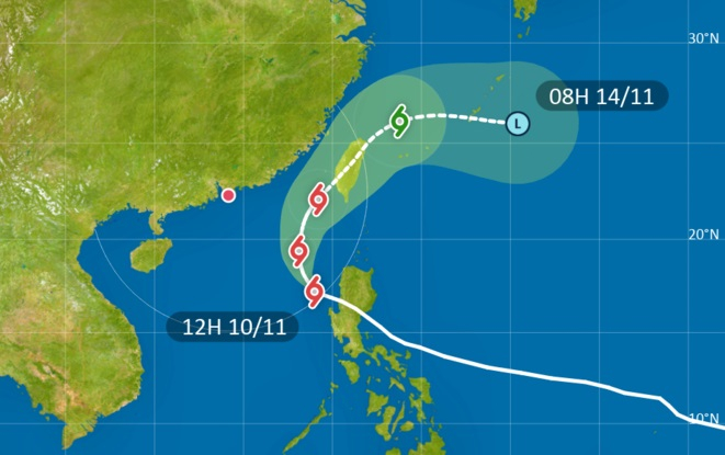 According to the current forecast, the storm will take a more northerly track towards Taiwan, and is expected to remain 400km or more from Hong Kong at its closest point – either on Tuesday night or early on Wednesday.