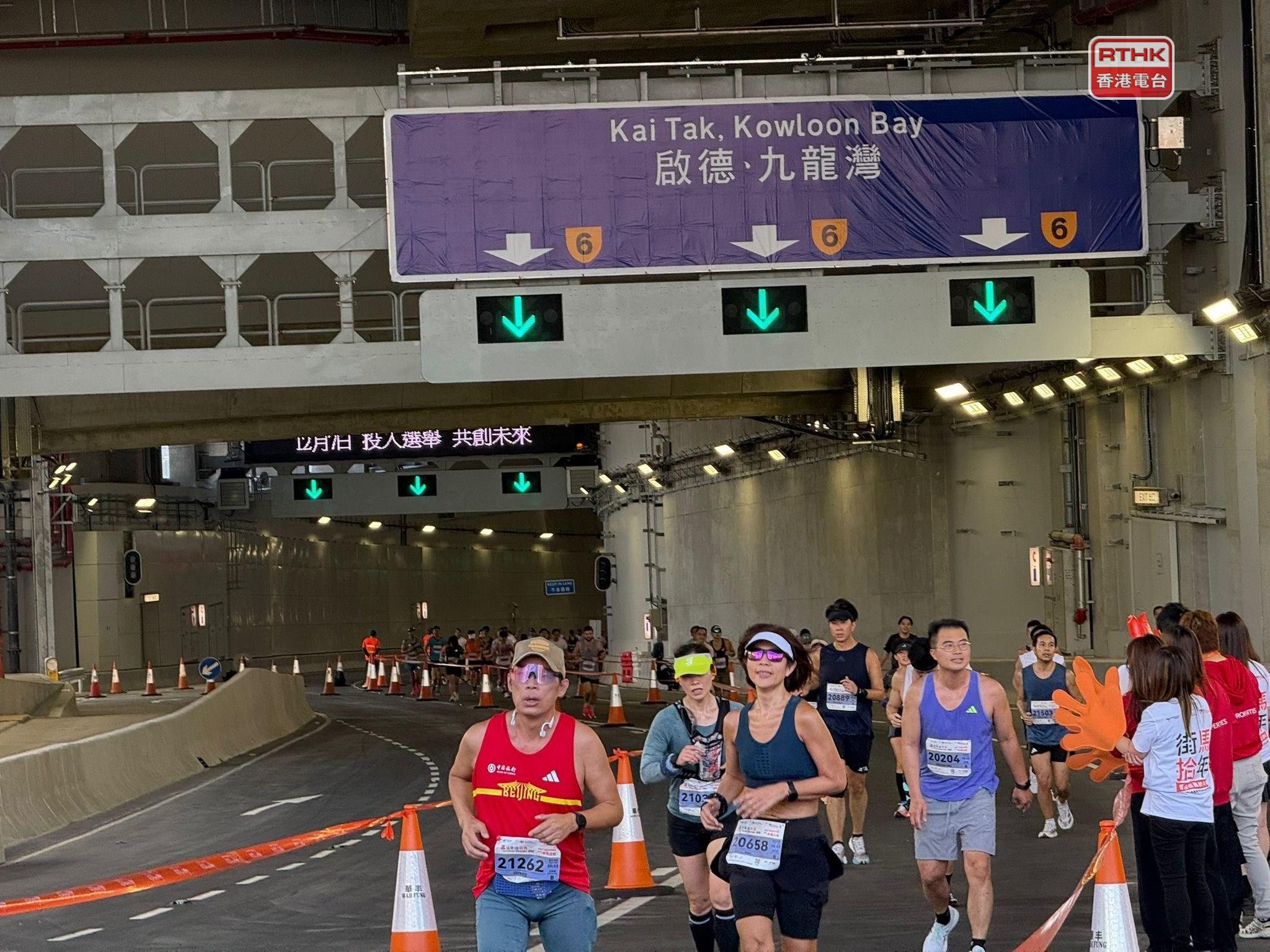 The full and half marathons started on the Island Eastern Corridor and passed through the Eastern Harbour Tunnel before heading into Kowloon.