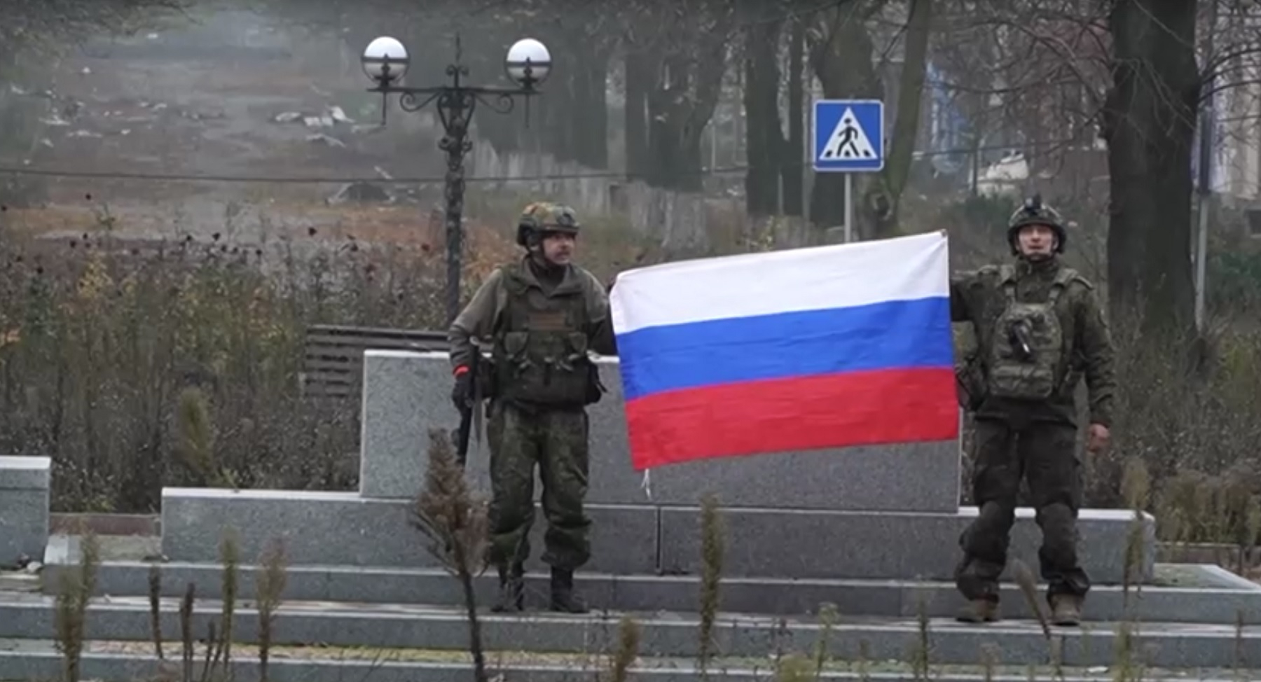 The defence ministry posted a video purportedly showing Russian soldiers raising their country's flag over Pokrovsk's central square.