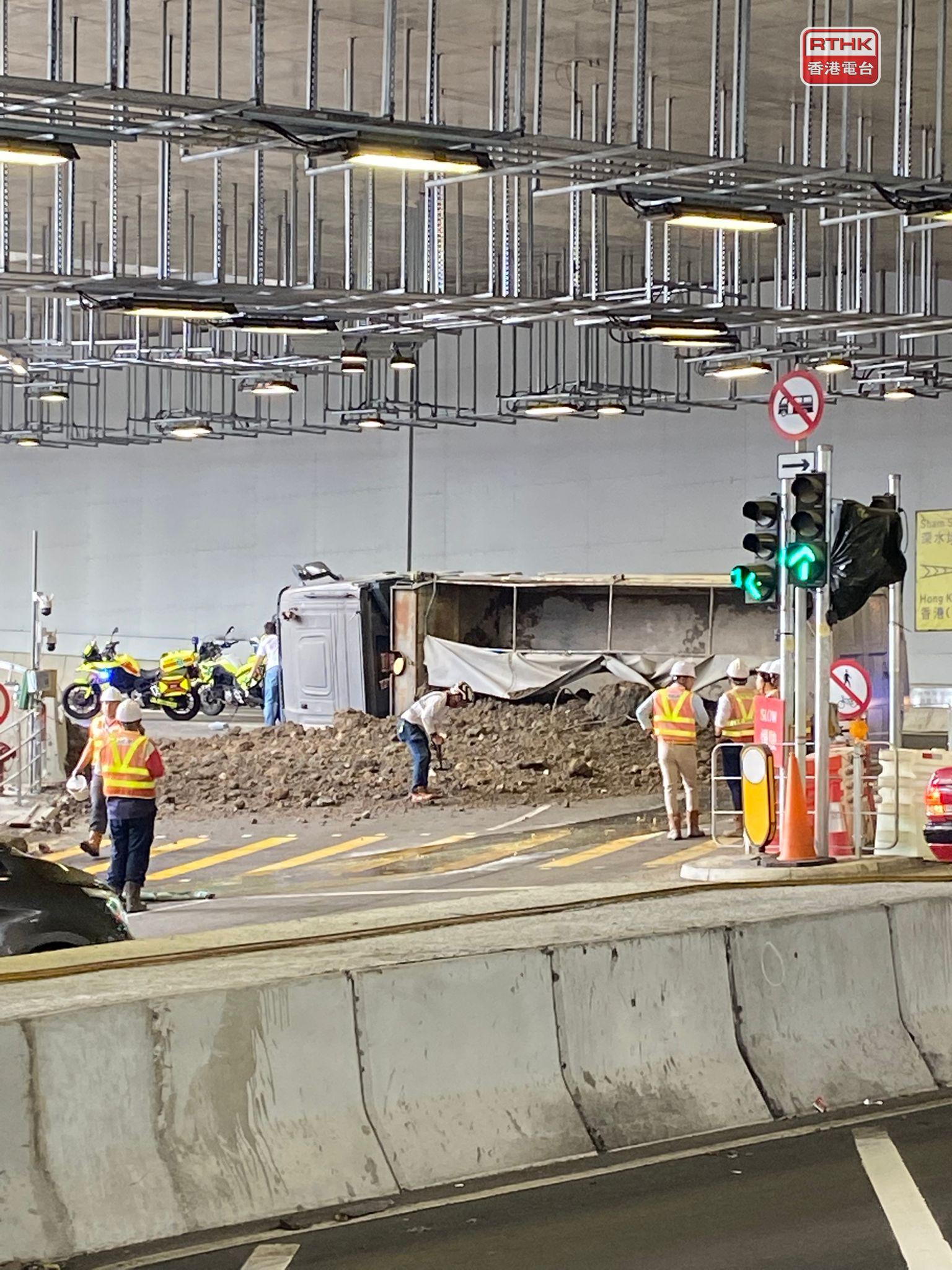 Police received a report at about 1pm that the truck flipped on its side on Hoi Wang Road.