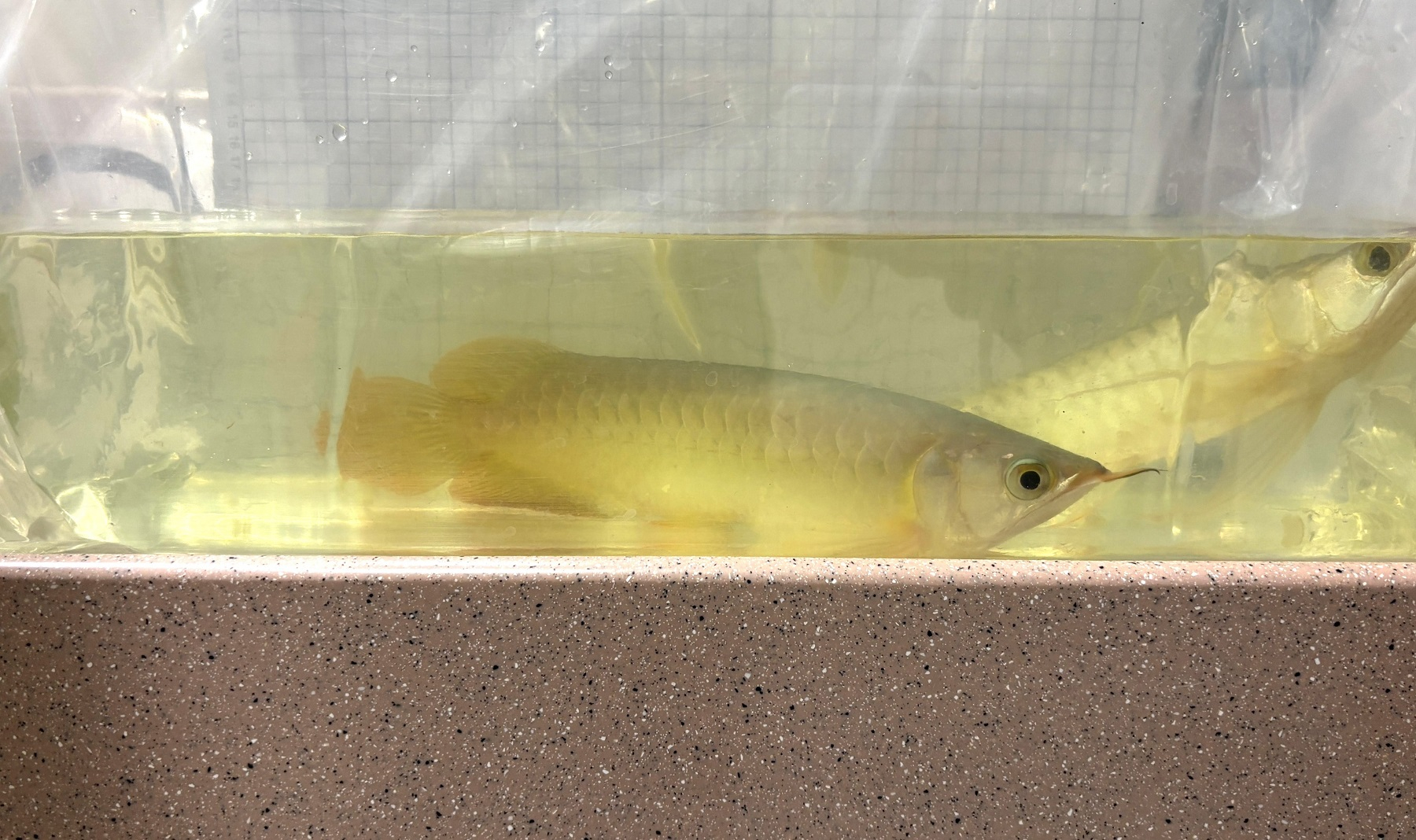 The department said in a statement that officers had intercepted a 52-year-old woman at the arrival hall of the Lok Ma Chau Spur Line Control Point, and found what appeared to be two live arowanas and two river stingray – all alive – inside water-filled plastic bags stuffed within her rucksack.