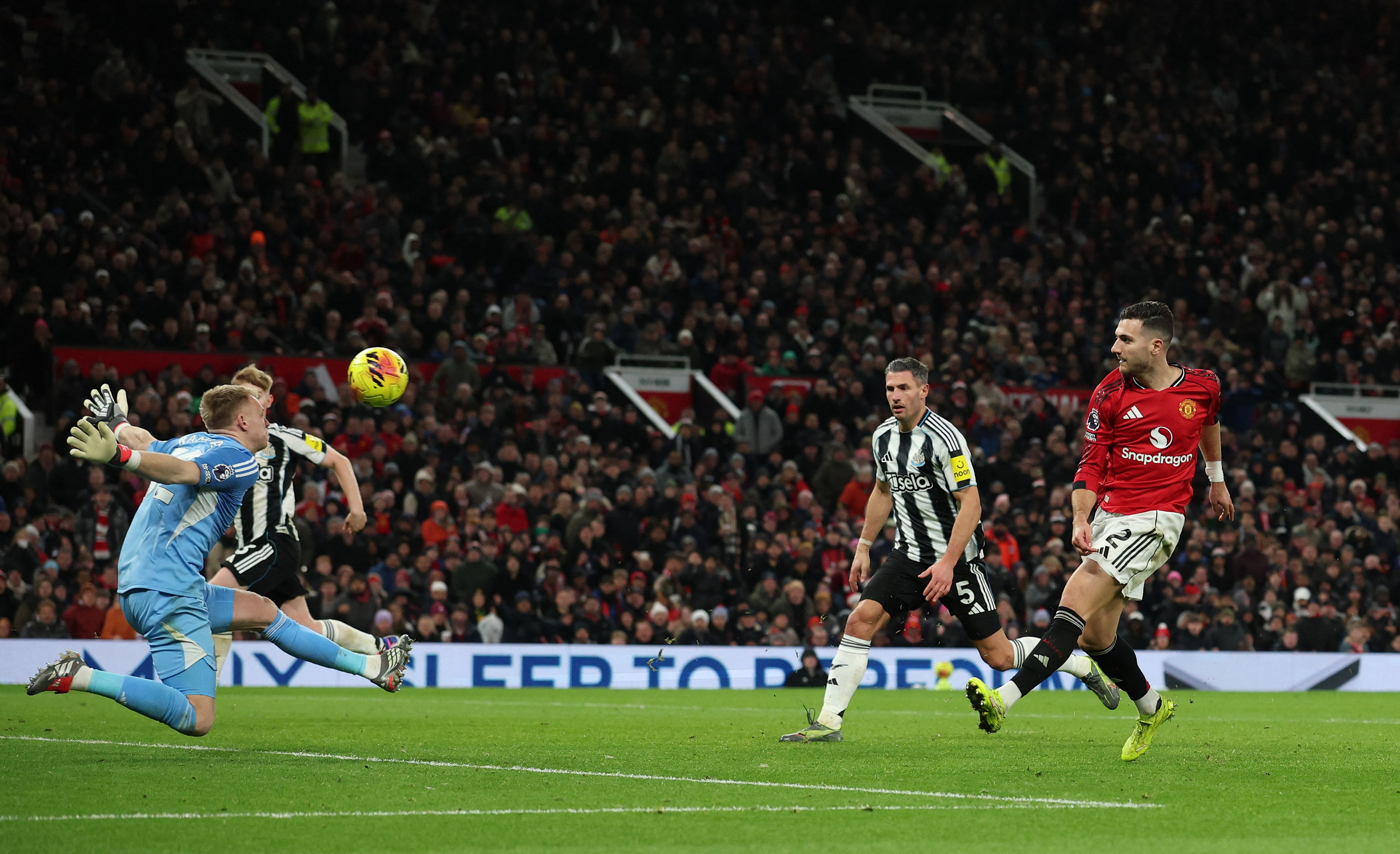 Sesko smashed off the bar from a narrow angle before Dalot blazed over after being picked out by Lisandro Martinez's free-kick.