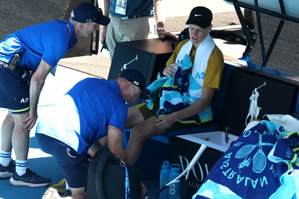 The roof was figuratively caving in on two-time defending Australian Open champion Jannik Sinner before he received help from above – literally.