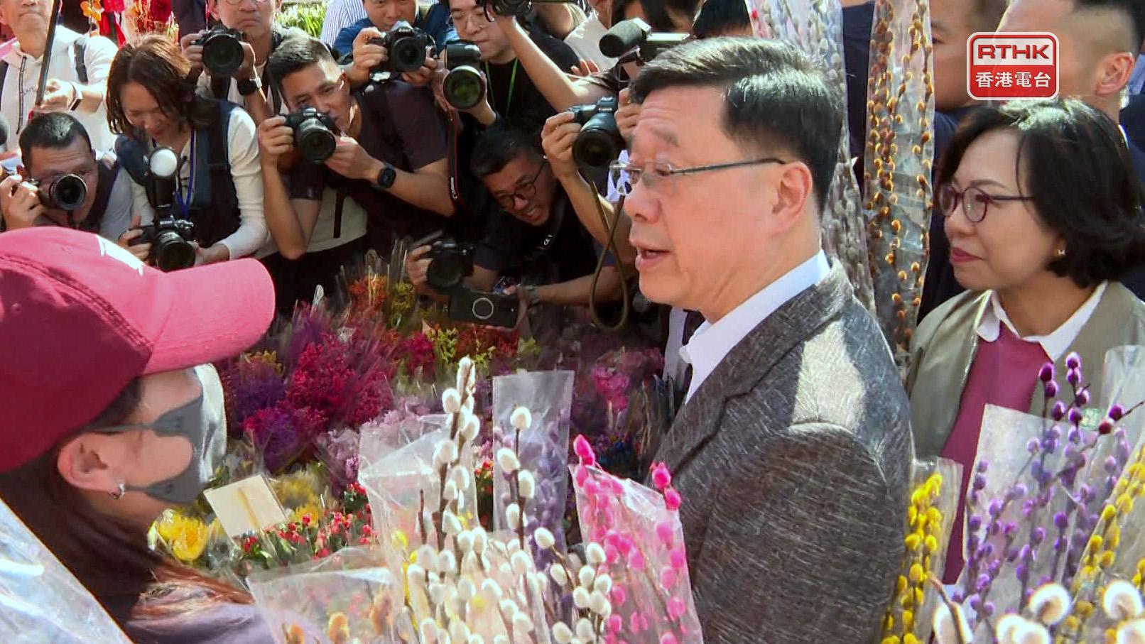 Chief Executive John Lee visited a Lunar New Year fair in Kwun Tong on Monday, greeting passersby and stall owners.