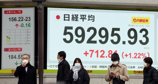 In Tokyo, the Nikkei share average surpassed the 59,000 mark for the first time, led by software-related shares as investor fears over disruption from artificial intelligence eased.