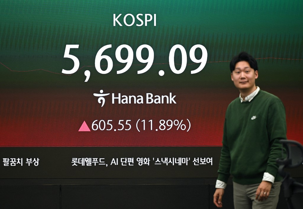 South Korea's benchmark Kospi surged as much as 12 percent, swiftly erasing almost all of its worst-ever daily drop a day earlier by climbing to 5,685 at the open, regaining most of Wednesday's 12.06 percent loss.