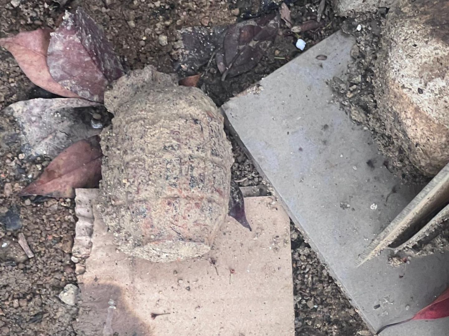 • The device, described as being roughly the size of a lemon, was found on a slope along Stubbs Road. Photo courtesy of police