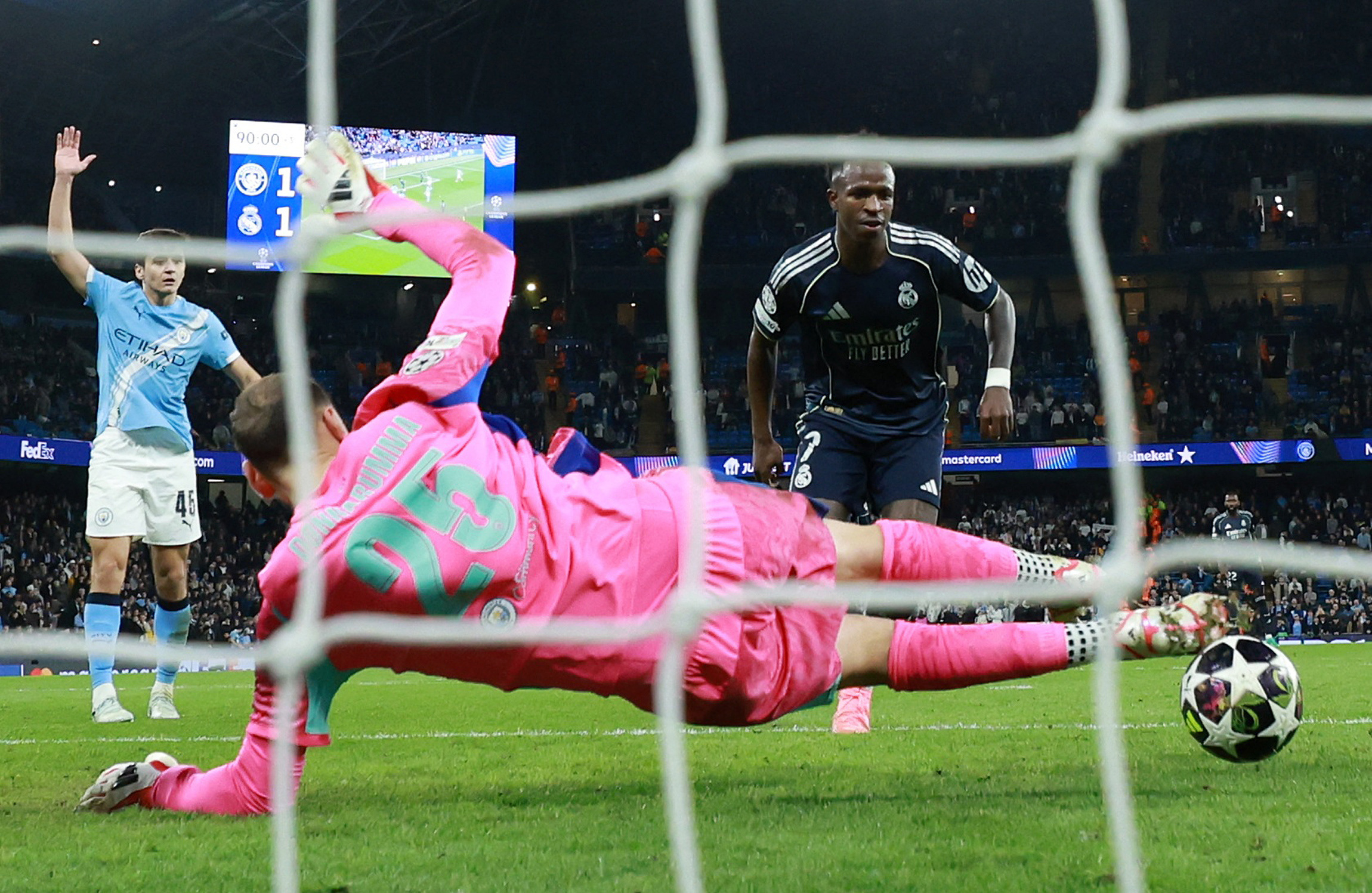 Any doubt over the outcome of the tie was killed just 20 minutes in when City captain Bernardo Silva was sent off for deflecting a Vinicius shot off the line with his arm.