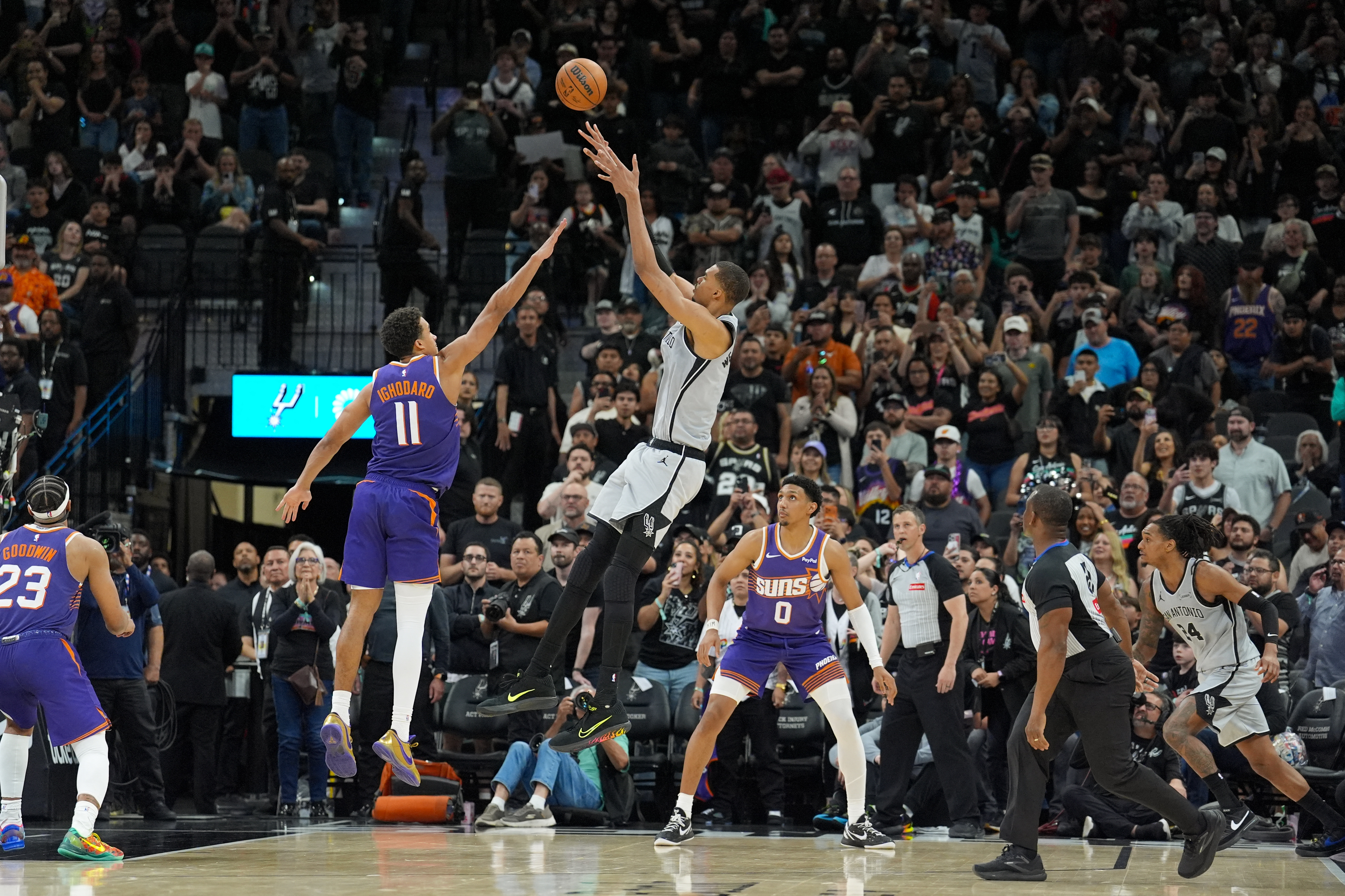 When Wembanyama's basket over Oso Ighodaro swished through the net the crowd at Frost Bank Center went wild.