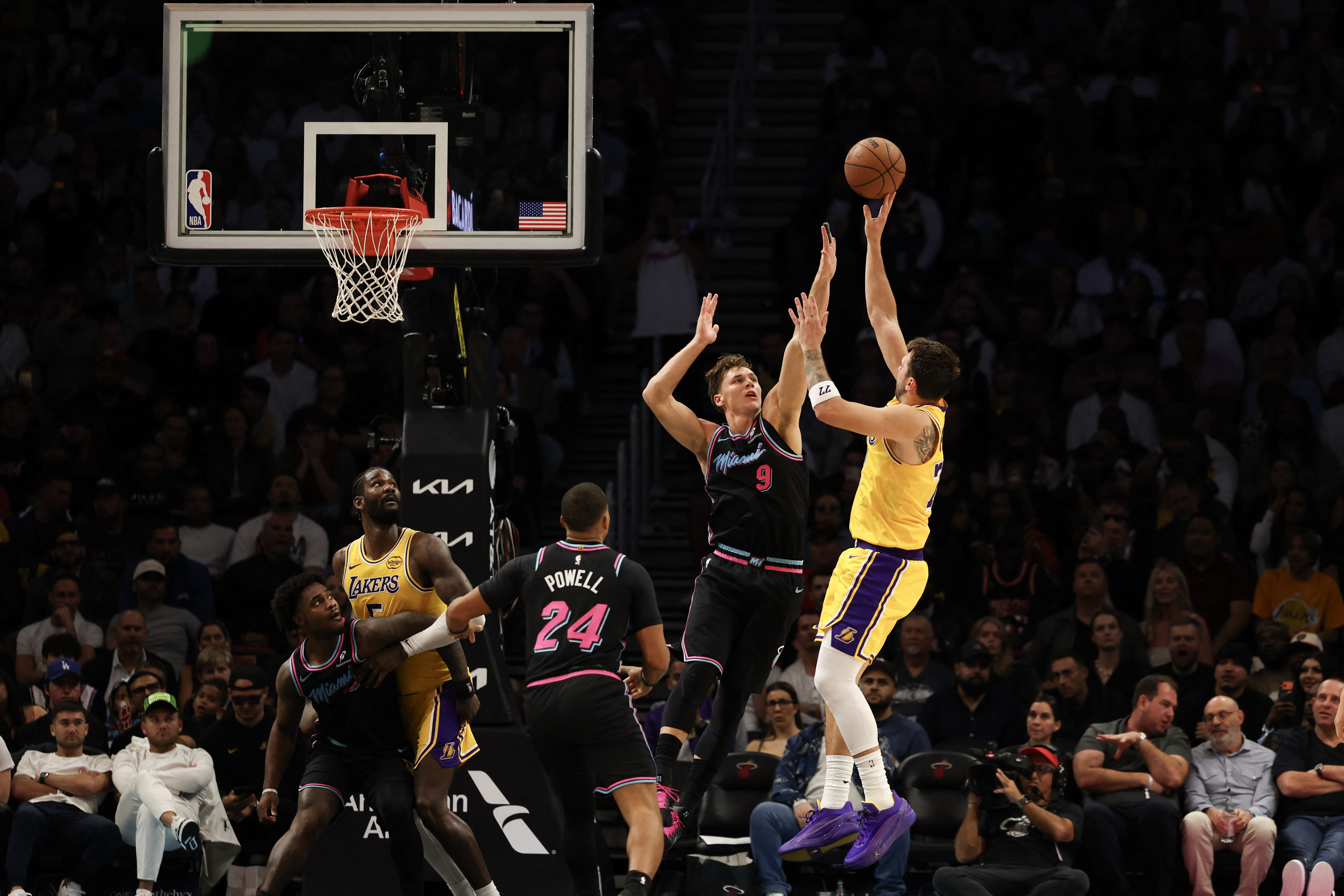 Luka Doncic scored 60 points and 41-year-old LeBron James hit another NBA milestone in style with a 19-point, 15-rebound, 10-assist triple-double in the Lakers' 134-126 victory over the Heat in Miami.