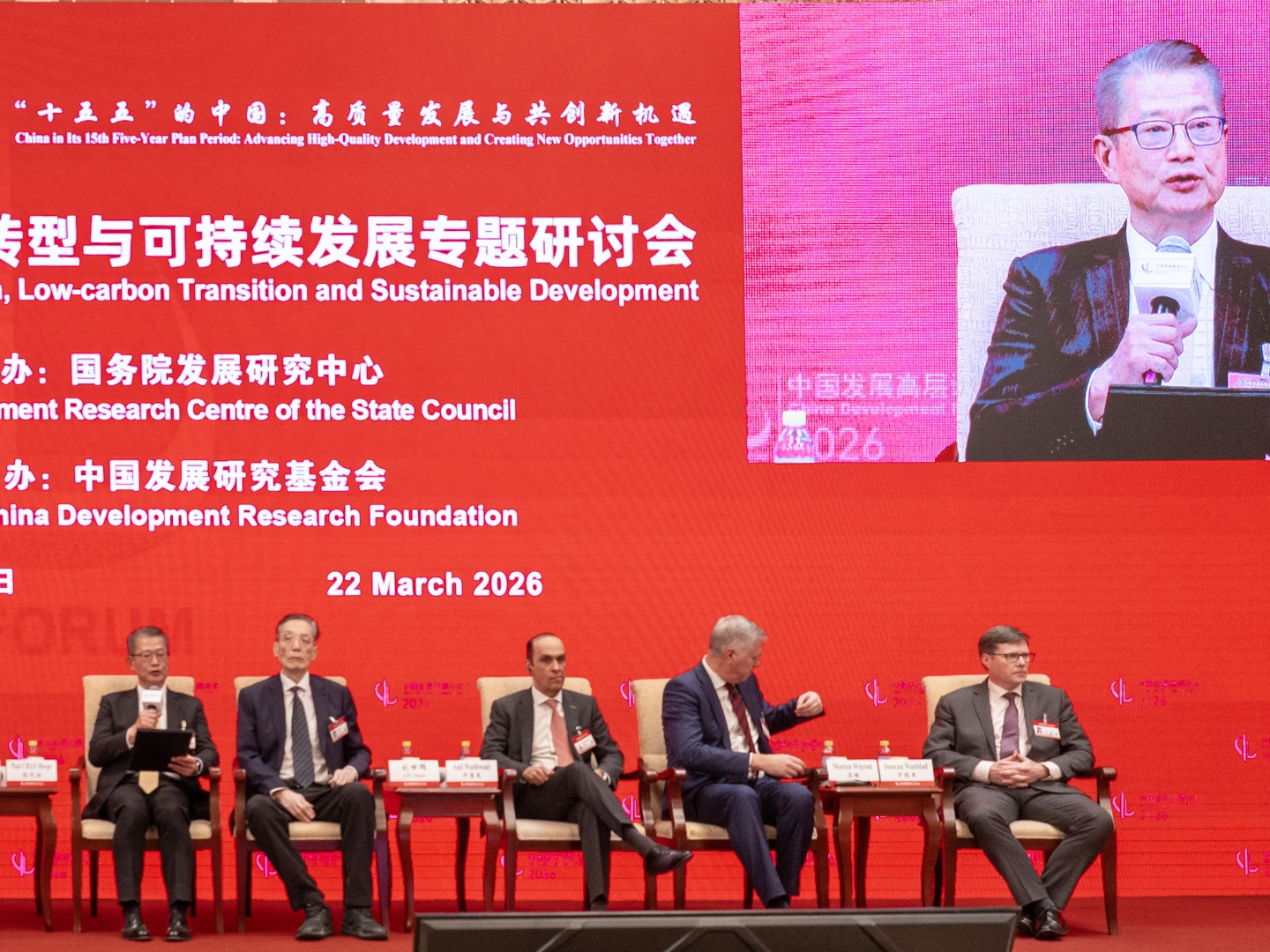 The city’s finance chief told a symposium at the China Development Forum in Beijing that the country is a leader in global climate governance, while the SAR is working to achieve its decarbonisation goals.