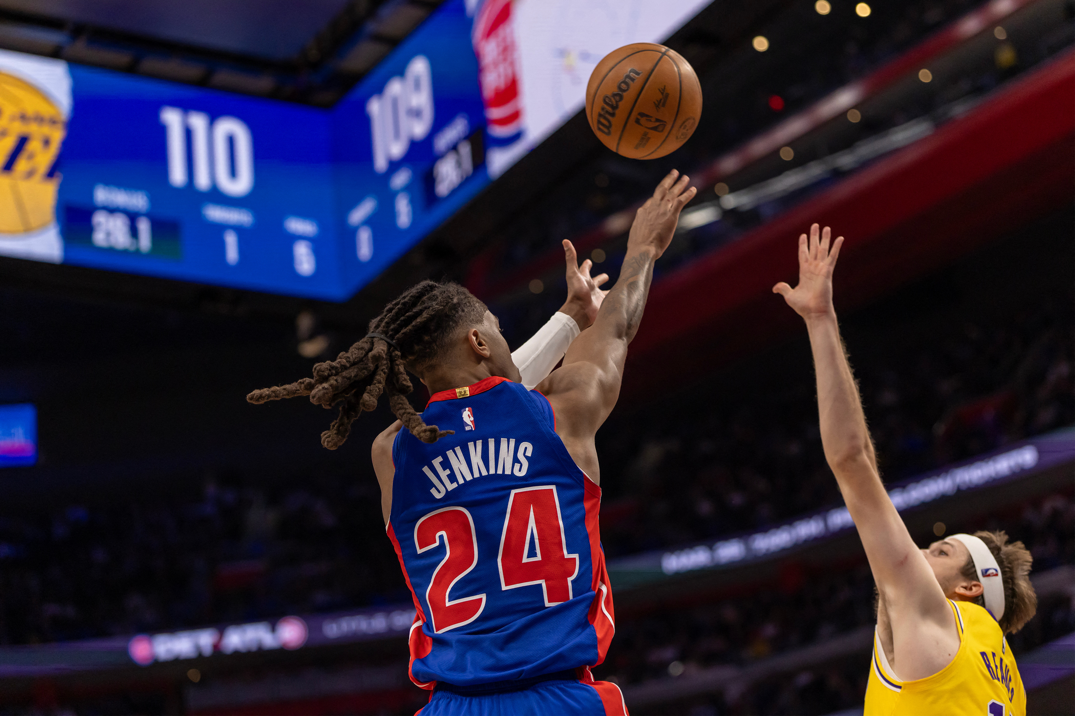 Austin Reaves put the Lakers 110-109 ahead with 30 seconds remaining with a floating jump shot, but Jenkins scored Detroit's final four points for a hard-earned win.