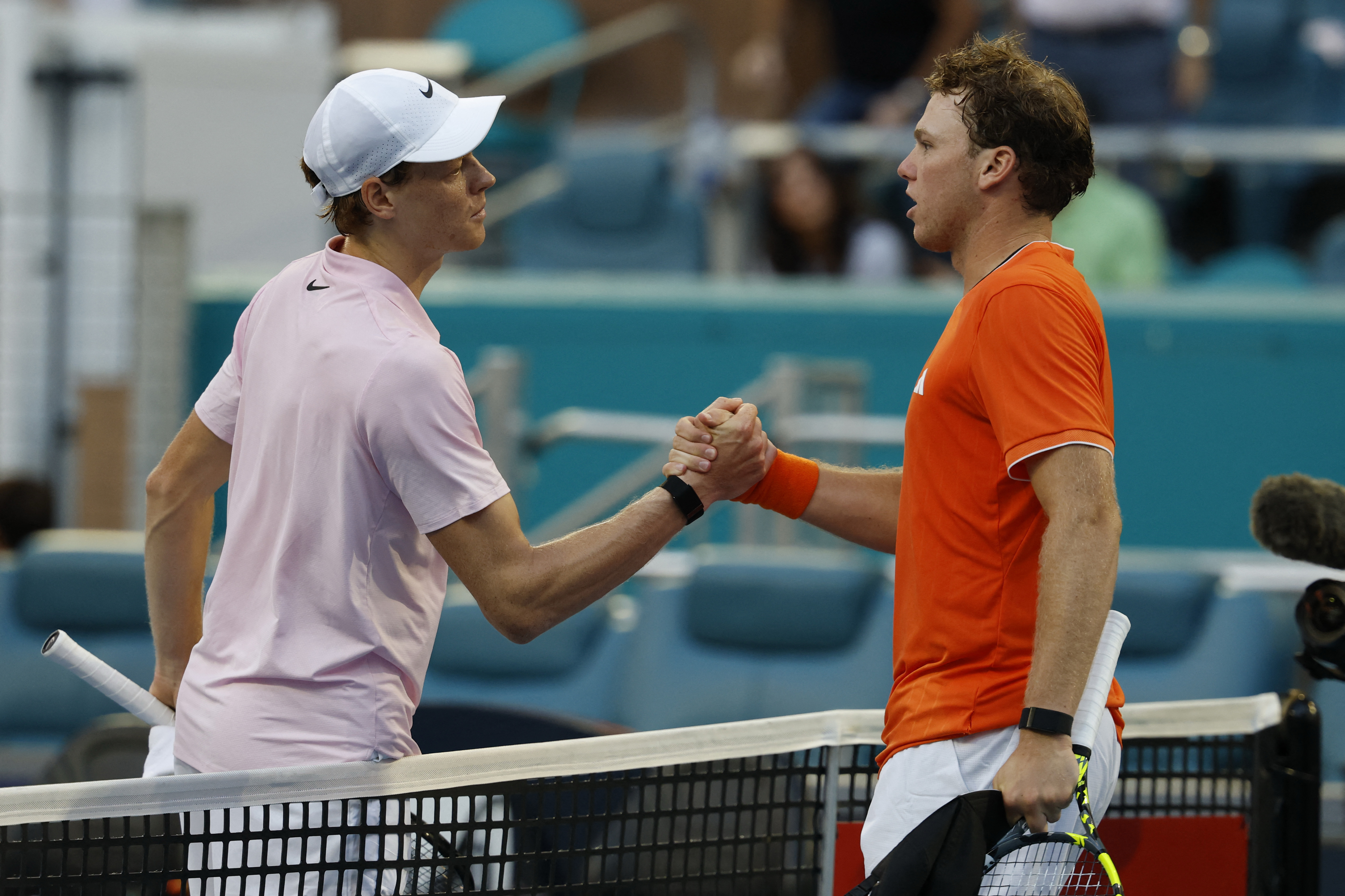 Michelsen though appeared to struggle with the bright late afternoon sunlight on the Hard Rock Stadium's main court, and Sinner pounced on the reprieve.
