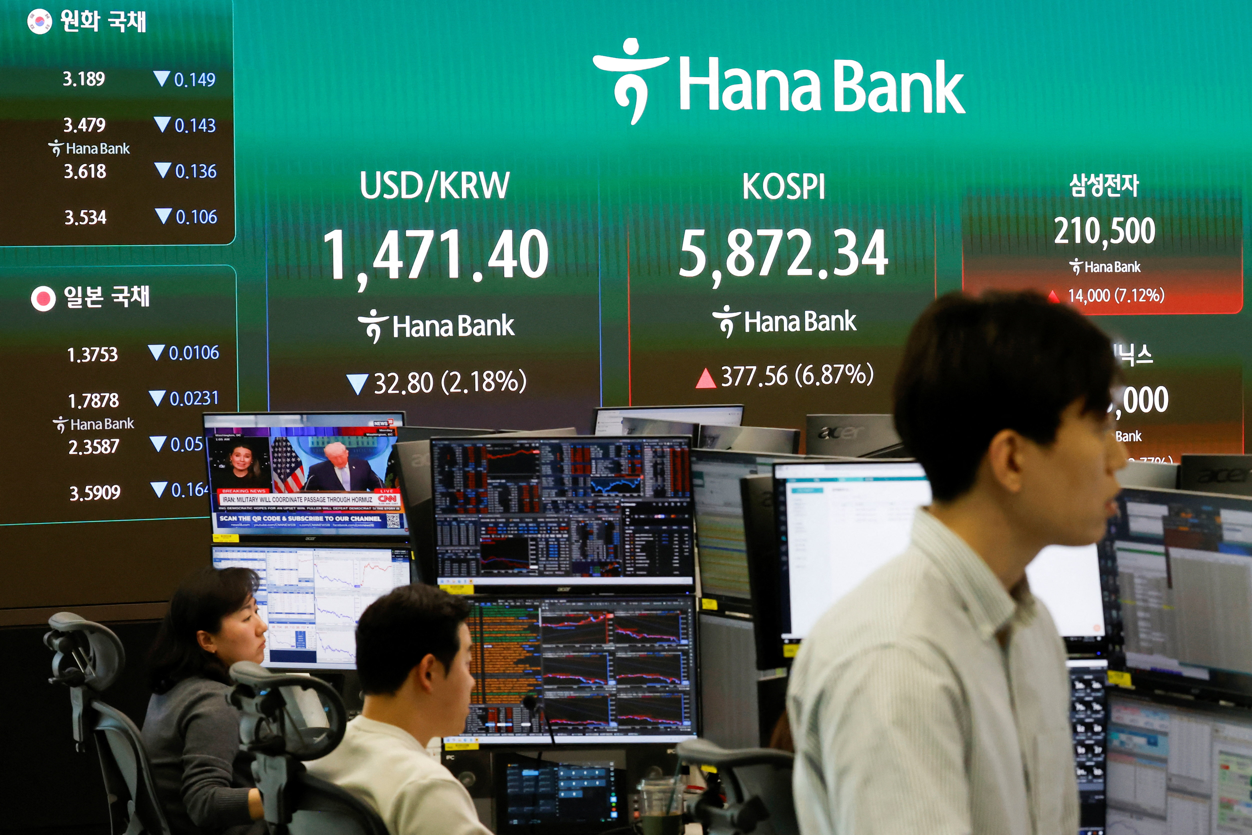 In Tokyo, the Nikkei share average surged on Friday to its steepest weekly advance in more than a year as optimism over corporate earnings and technology investment outweighed concerns about a fragile ceasefire in the Middle East.