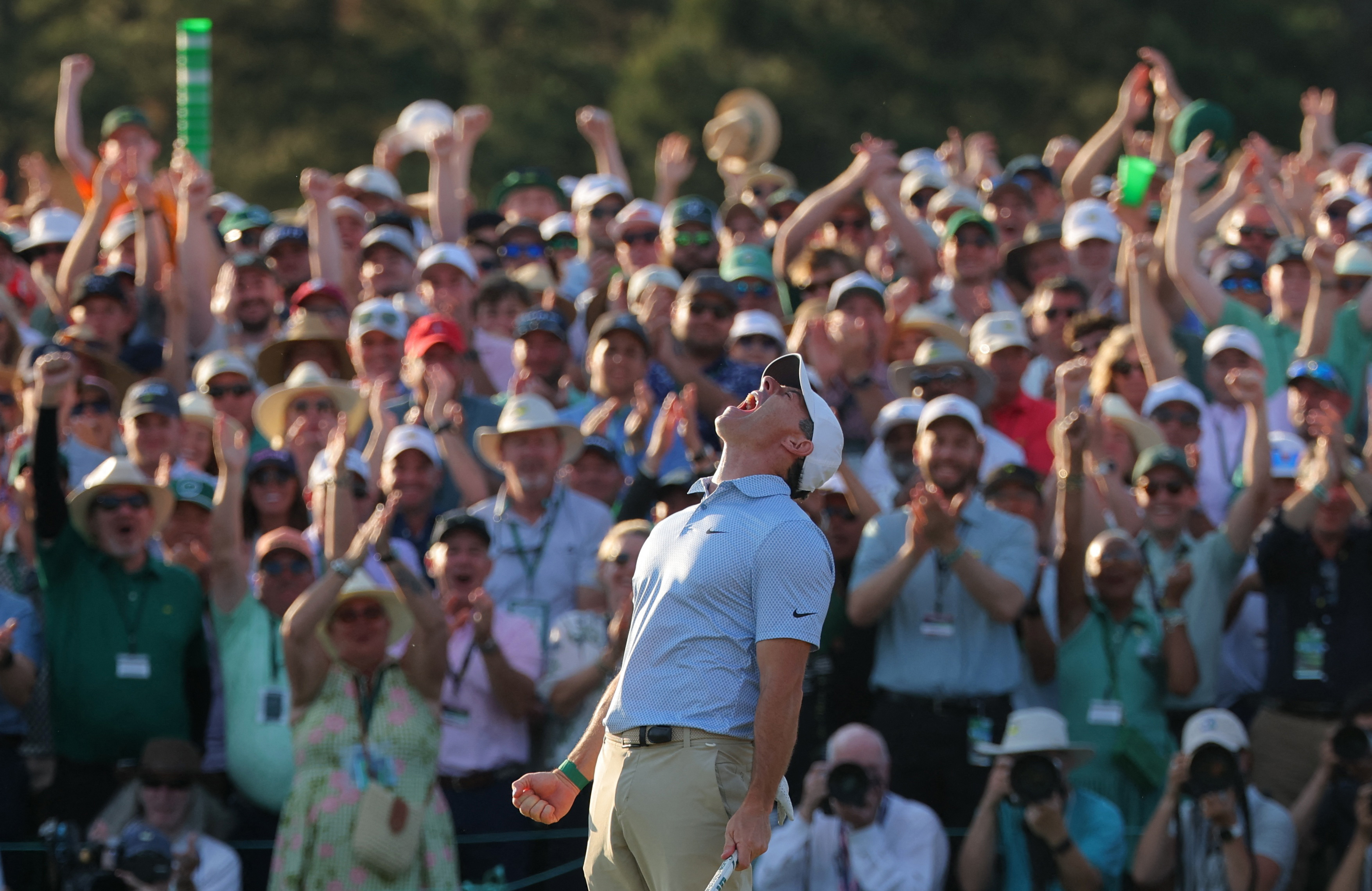 The world number two from Northern Ireland made a double bogey at the fourth and a bogey at the sixth, but responded with four birdies in the next seven holes and hung on after woeful late tee shots to win a second green jacket and a record top prize of $4.5 million.