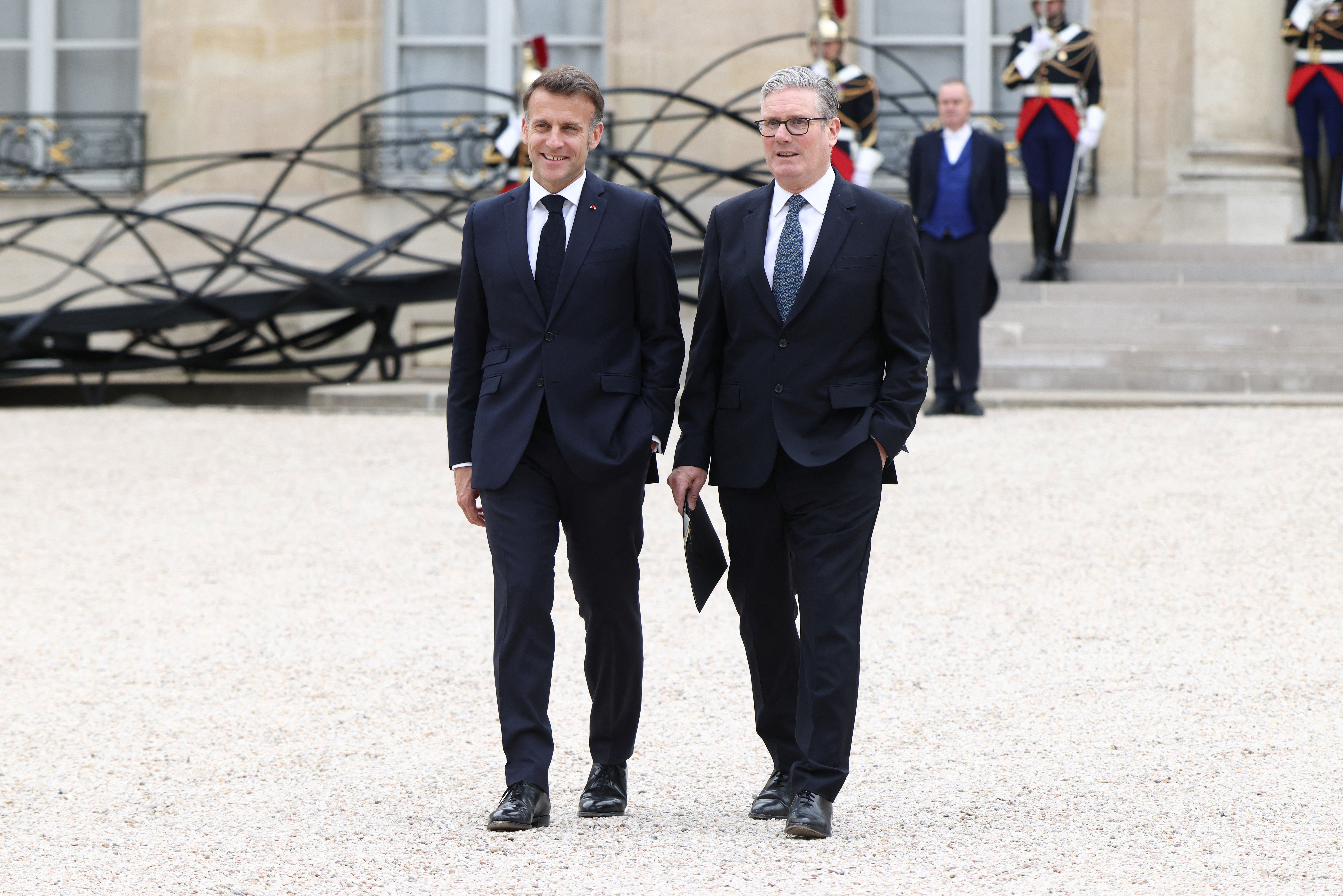 French President Emmanuel Macron and British Prime Minister Keir Starmer after the multinational virtual summit in Paris, France. Photo: Reuters