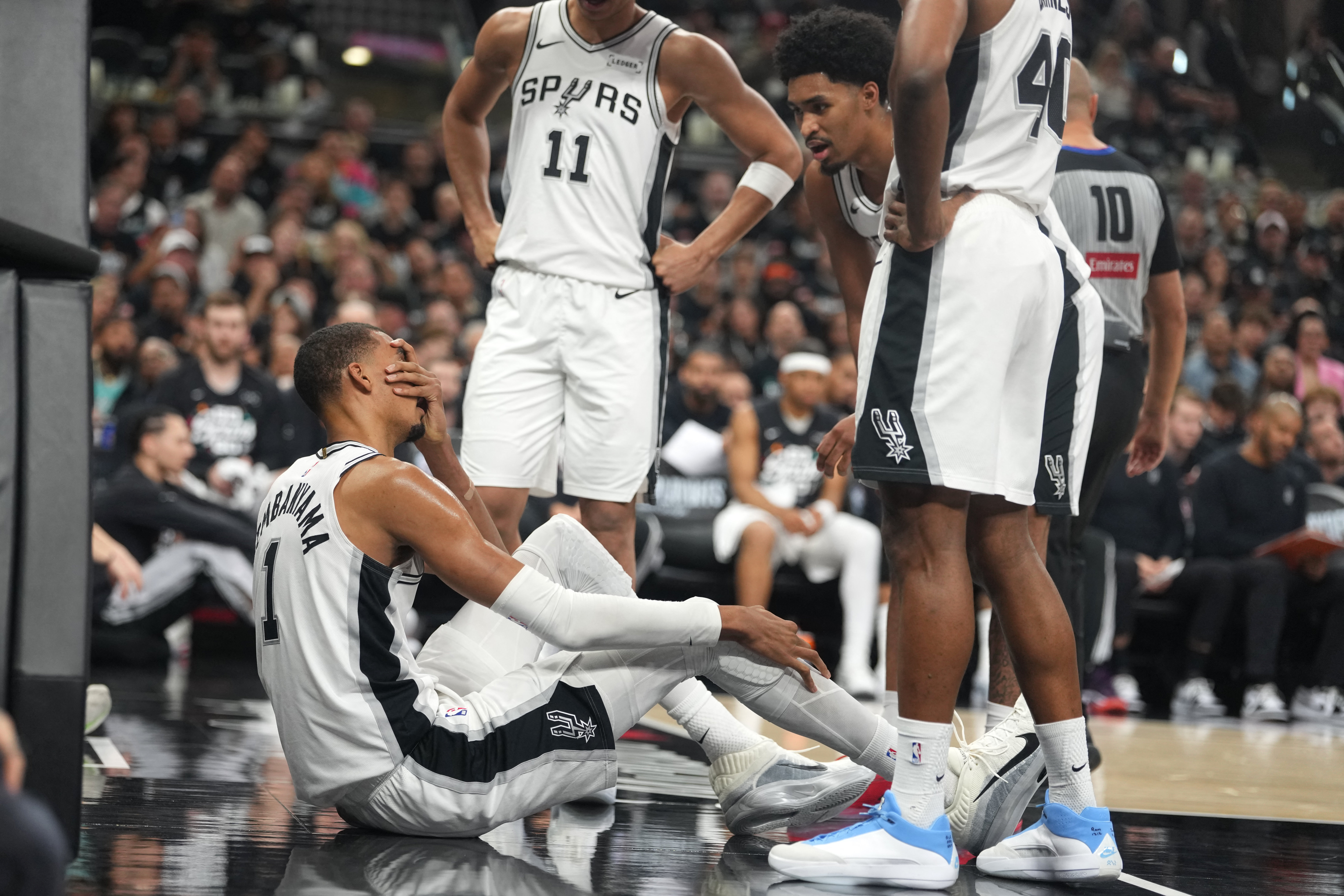 San Antonio superstar Wembanyama, who had scored 35 points in the Spurs' game one win on Sunday, exited in the second quarter at the Frost Bank Center in Texas after hitting his head on the court following a collision with Portland's Jrue Holiday.
